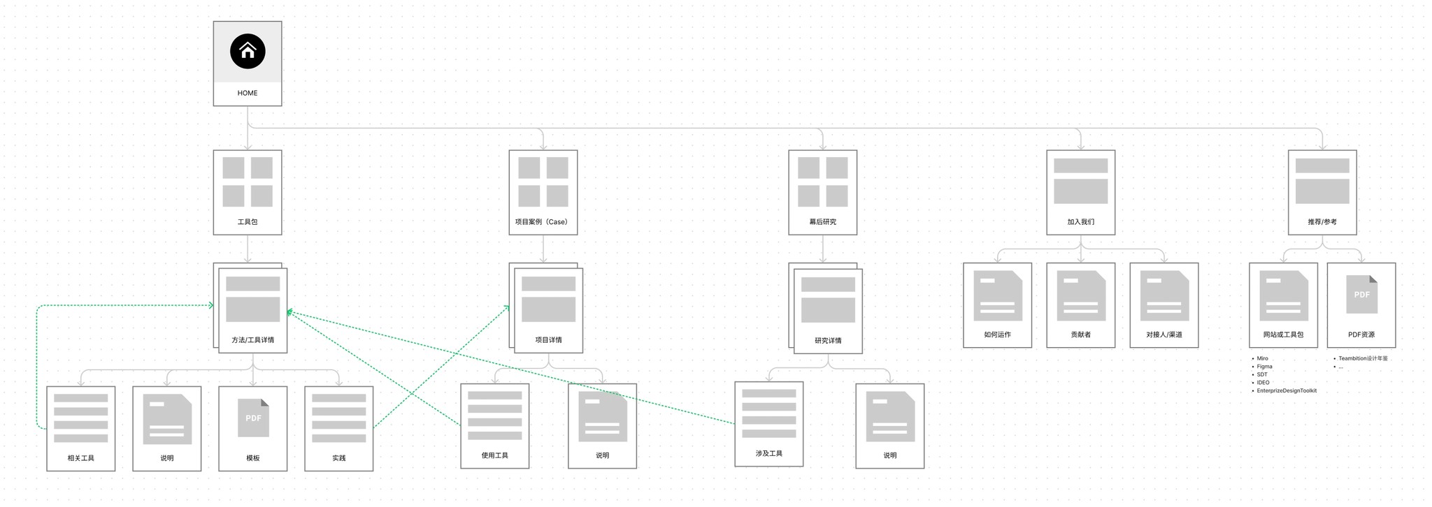 根据实际的页面数量,选用横向/纵向的地图类型,划分出一级页面、二级页面等。