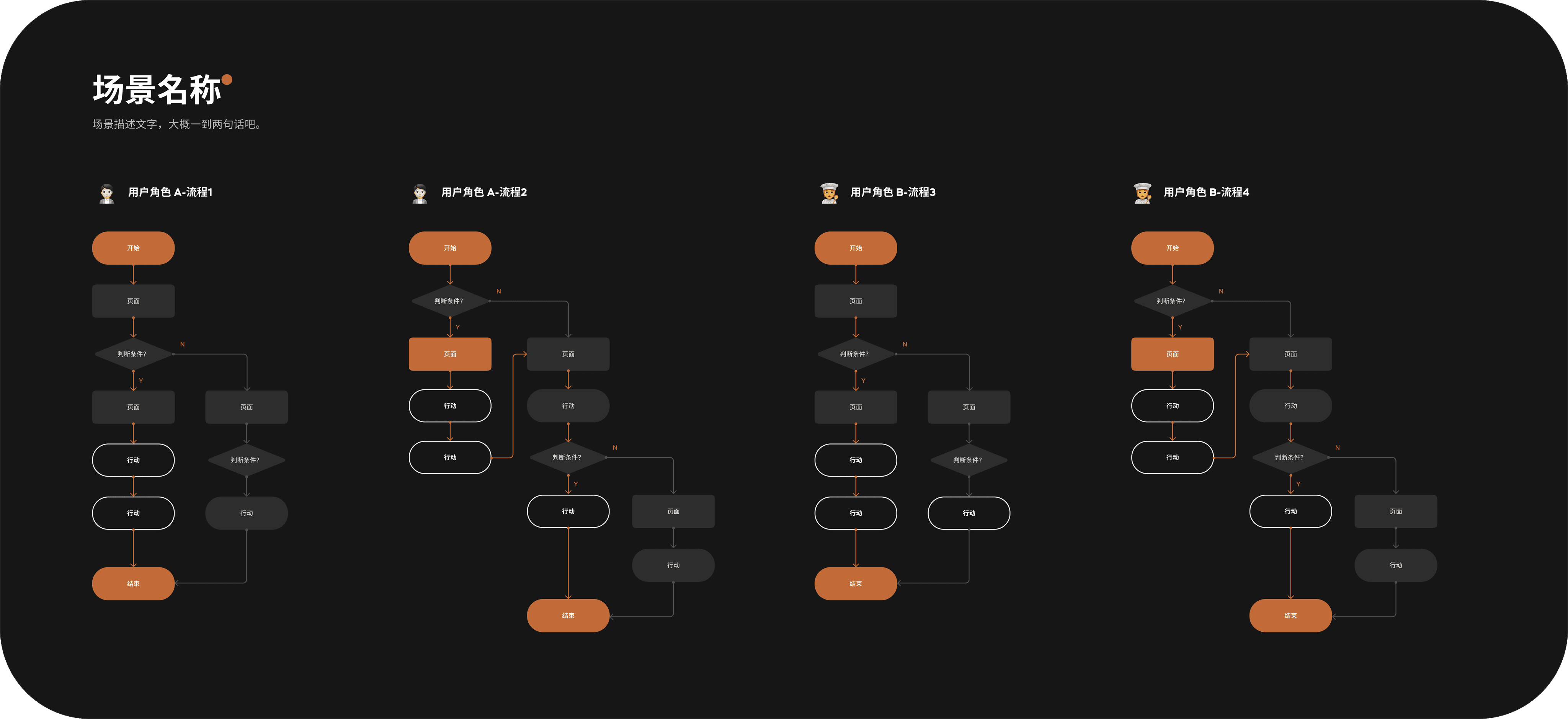 用户流程是用户为了达成某个目标而在产品中的操作路径。该路径拥有固定的起点和终点,由一系列步骤组成,通常具有分支,代表在完成目标中途的各种可能性。